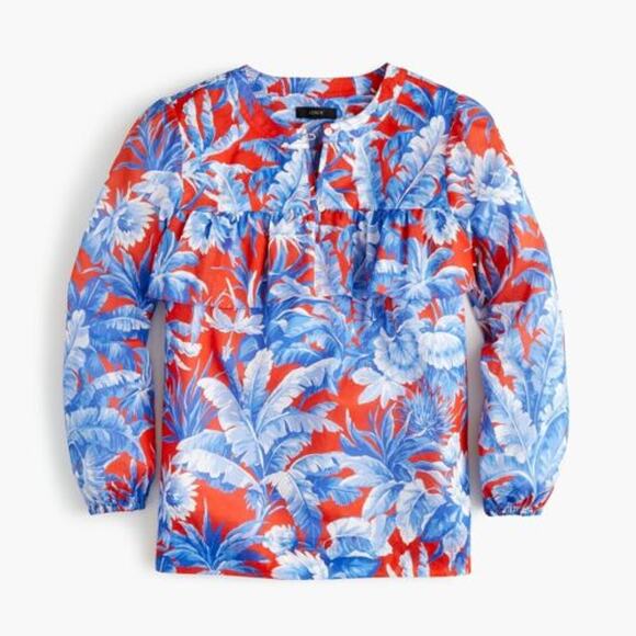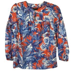 J. Crew Womens Top Ratti Rio Floral Popover Blue Red Fern Print Shirt sz XXS NWT