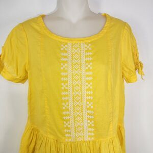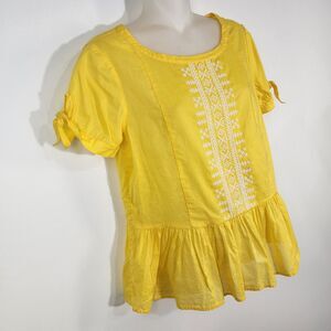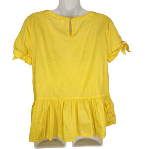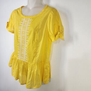 J. Crew Women's Top Size 2 Embroidered Peplum Tie Short Sleeve Yellow Popover