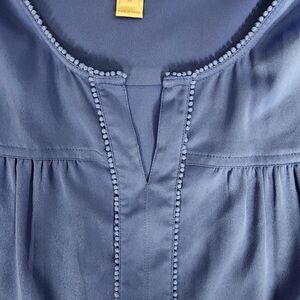 J Crew Womens Top Small Peasant Blouse Mini Pom Pom Trim Royal Blue 3/4 Sleeve