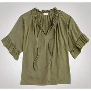 J Crew Womens Top Tee T Shirt Size S Ruffle Neckline Sleeves Stretch V Neck