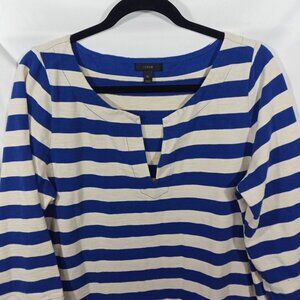 J Crew Womens Tunic Dress Size XL 100% Cotton Blue White Striped 3/4 Sleeve