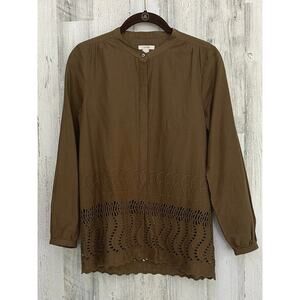 Item: J Crew Womens Tunic Shirt Brown Embroidered Eyelet Covered Placket