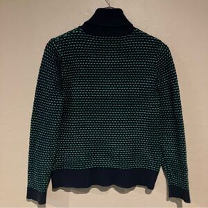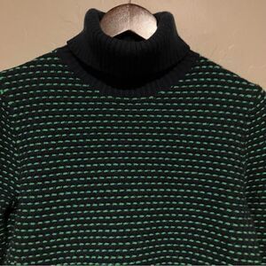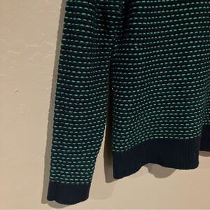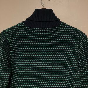 J. Crew Womens Turtleneck Ski Sweater Navy Blue Green Striped Soft Pullover Sz M