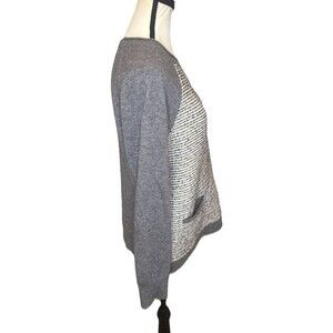J Crew Women’s Tweed Front Pullover Sweater Pockets Gray Merino Wool Blend Sz M