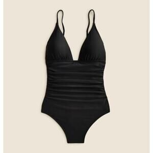 J. Crew Women's V-Neck Ruched Plunge One-Piece Swimsuit BX212 Black Size 6 NWT