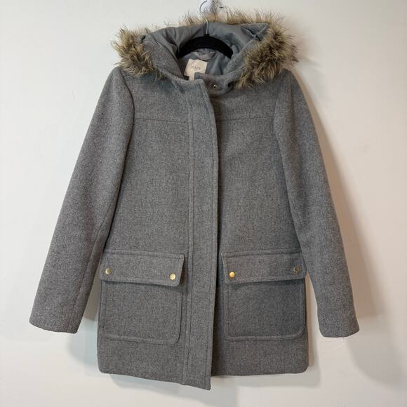 J. Crew Women's Vail Parka Wool Blend Pea Coat Faux Fur Trim Full Zip Grey 2