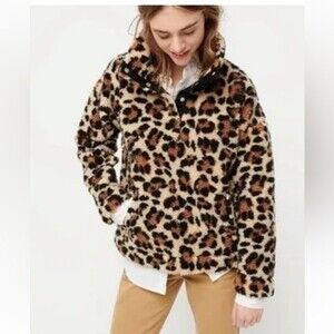 J. Crew Womens Vintage Leopard Animal Print Fleece Sherpa Pullover XSmall Cozy