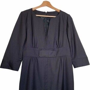 J Crew Womens Wool Solid Short Sleeve Knee Length Sheath Dress Black Size 6