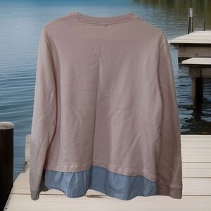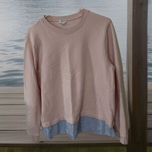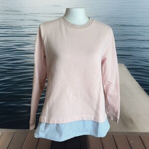 J. Crew Womens XL Sweatshirt Crew Neck Striped Hem Stretch Blue White Pink Chic