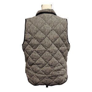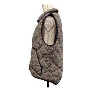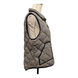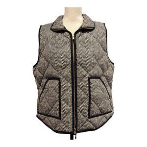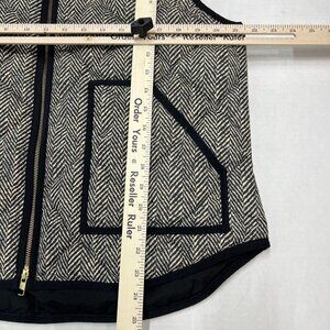 J Crew Womens XS Down Puffer Vest Herringbone Chevron Print Black Trim Outdoor