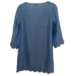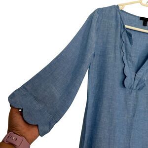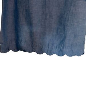 J. Crew Womens XS Scalloped Tunic in Vivid Waterfall Blue Linen Cotton Blend