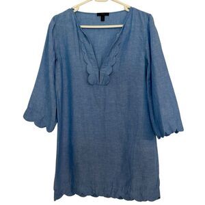 J.Crew Womens XS Scalloped Tunic in Vivid Waterfall Blue Linen Cotton Blend Cover-Up