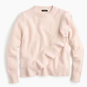 J Crew Womens XSmall Light Pink Ruffle Crewneck Sweater Boiled Merino Wool XS