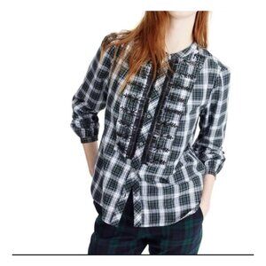 J. Crew Womens embellished beadwork button up, tartan plaid, long sleeve shirt.