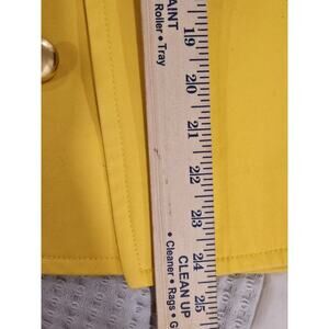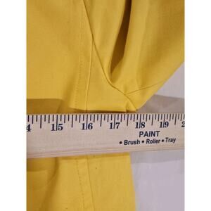 The product is a like new J Crew women's size 4 bright yellow Trudy peacoat blazer, made of cotton with a double-breasted style. It is suitable for casual and workwear occasions, featuring a vibrant yellow color with a size 4 regular fit. The peacoat also incorporates an acetate lining material and follows the J Crew Trudy model, adding a pop of color to any outfit with its stylish and versatile design.