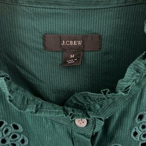 J. Crew Women’s Emerald Green Eyelet 1/2 Button Flutter Sleeve Cotton Blouse Medium