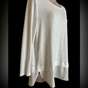 Women's Knit Top Ivory Long Sleeve Silky Layered Hem Blouse by J.Crew. Simple and versatile.PTP 21”