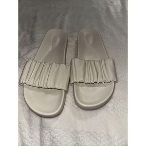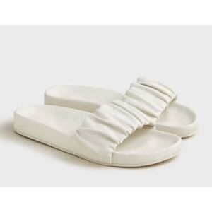 J Crew Women's Pacific Sandal Size 8.5 Scrunchie Strap Slide White Leather Flip