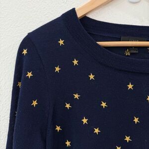 J. Crew Women's Small Navy Blue 100% Merino Wool Tippi Sweater Embroidered Stars