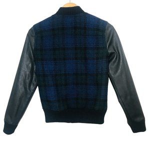 J. Crew Wool Blend Academia Varsity Plaid Bomber Jacket Black Green Blue Tartan Preppy XS