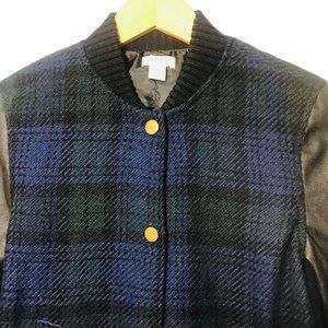 J. Crew Wool Blend Academia Varsity Plaid Bomber Jacket Tartan Preppy Size XS