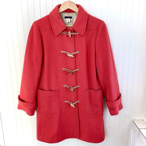 J. Crew Wool Blend Duffel Coat with Wooden Toggles (red/orange)