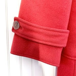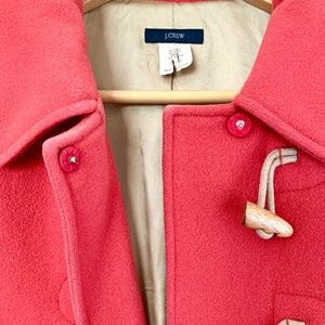 J Crew women's red orange duffle coat with wooden toggle closures. Wool blend. Coat is in excellent condition with no noticeable signs of wear.