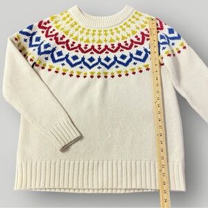 J. Crew Wool Blend Fair Isle Ski Sweater L Ivory/Blue/Red/Green Off White