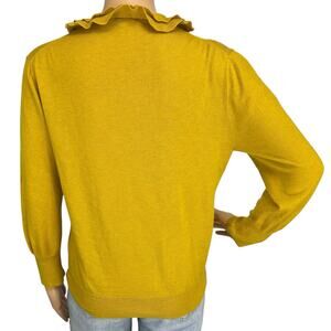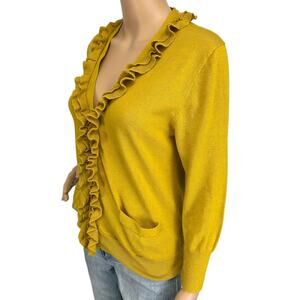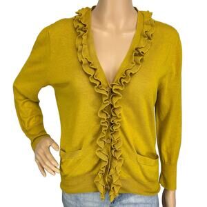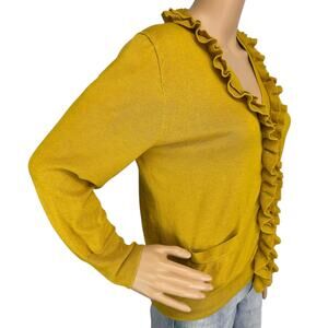 J. Crew Wool Blend Ruffled Cardigan Sweater Mustard Yellow 29003 Size L