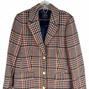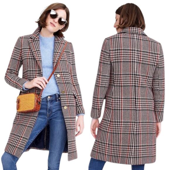 J Crew Wool Blend Single Breasted Topcoat Cabernet Plaid Size 6