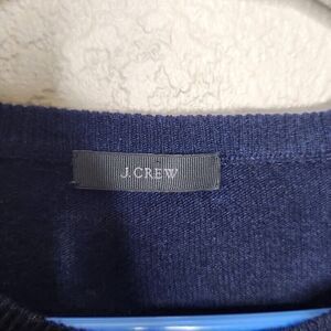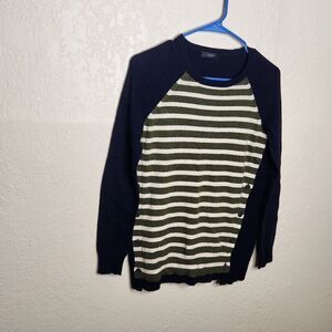 J. Crew Wool Blend Sweater Women XS Blue Green Striped Side Button Elbow Patch