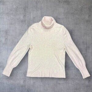 J Crew Wool Blend Sweater Womens Large Pink Turtleneck Balloon Sleeve Pullover