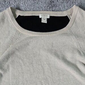 J. Crew Wool Blend Tan Black Elbow Patch Side Buttons Crew Neck Sweater Preppy