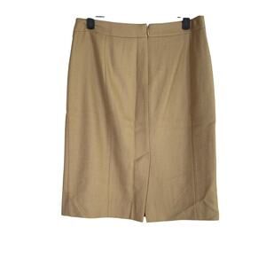 J. Crew Wool Button Accent Pencil Knee Skirt Zip Up Back Lined 2 Camel Beige