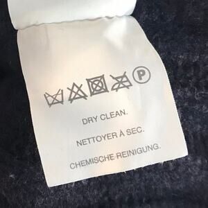 Features: Navy blue crewneck sweater, cable knit, pom poms on the front, ribbed detail
