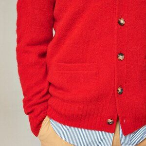 J Crew Wool Cardigan Mens Medium Red Sweater Fuzzy Hairy Brushed Button Up