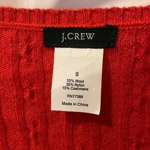 J Crew Wool Cashmere Blend Cable Knit V Neck Sweater