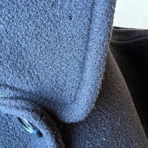* Features: FLAW- coat has a few small moth damage /holes, they are not very noticeable. Most are surface and do not go through the fabric. This coat is heavyweight and very warm, 2 hand pockets, 2 slant chest pockets, fully cotton blend lined, cropped style, double breasted, thick. Coat still has years of warmth and classic style!