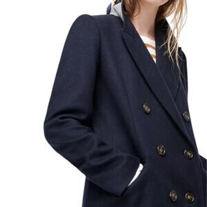J. Crew Wool Cashmere Blend Double Breasted Top Coat Navy Blue Size 10