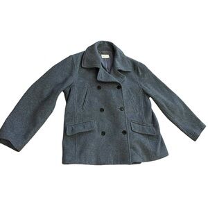 J. Crew Wool Cashmere Blend Gray Pea Coat Women’s L Classic Preppy Coastal Luxe