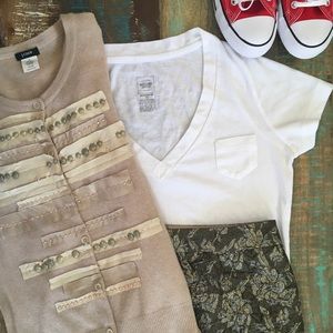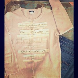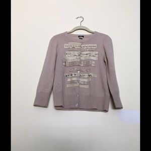 J. Crew wool and cashmere cardigan with silk and bead details. Cute with jeans, over a dress or paired with a work skirt. Great condition. Size small.