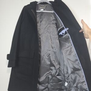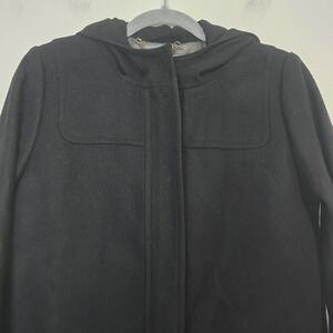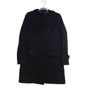 J. Crew Wool Cashmere by Nello Gori Long Coat in Black. Front drop pockets, fully lined, full front zipper. hooded