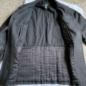 J. Crew Wool Coat Jacket Gray Button Front Lined Mens Size Large Professional