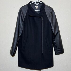 J Crew Wool Coat Leather Sleeves