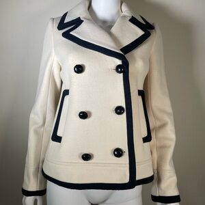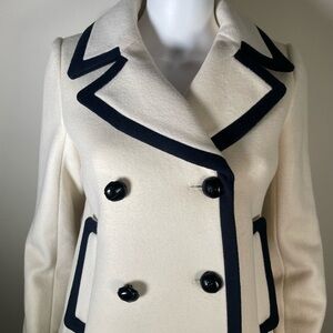 J. Crew Wool Cream Navy Trim Pea Coat Nello Gori Italian Fabric Jacket Womens 2