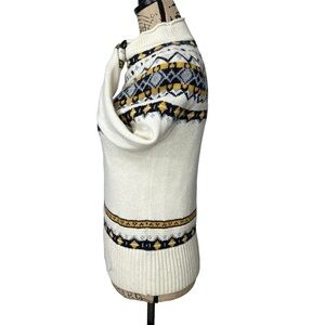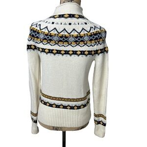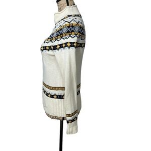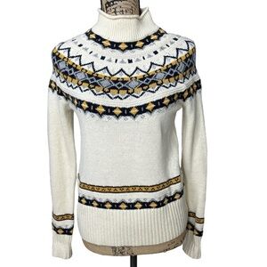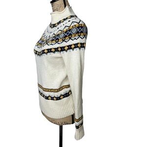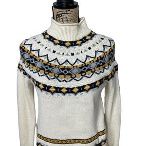 J. Crew Wool Mix Sweater Fair Isle Blue and Cream Roll Neck Style