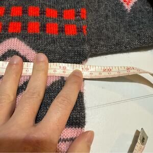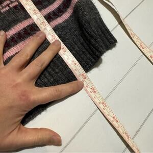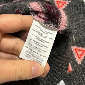 This sweater is in great condition! Gray with red and pink Aztec tribal Southwest print. Crewneck style sweater. Wool mohair blend. Women’s size small. QQ