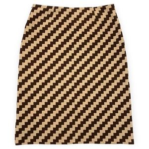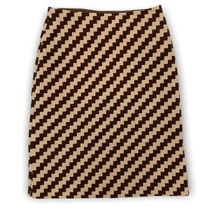 J. Crew Wool Pencil Skirt Knee Length Women's Size 6 Chevron Pattern Brown Cream