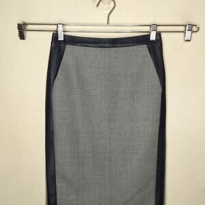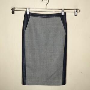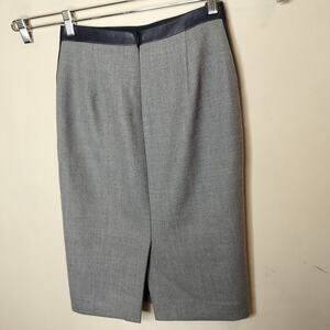 J. Crew Collection gray wool pencil skirt. Size 00. 100% wool + leather (23197)