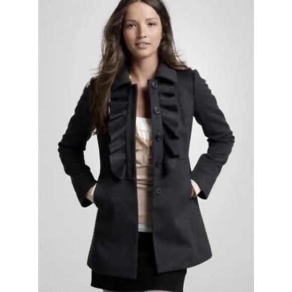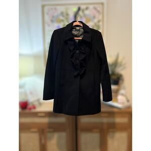 J. Crew Wool Ruffle Trim Front Button Pea Coat 17501 Black Womens Size Small